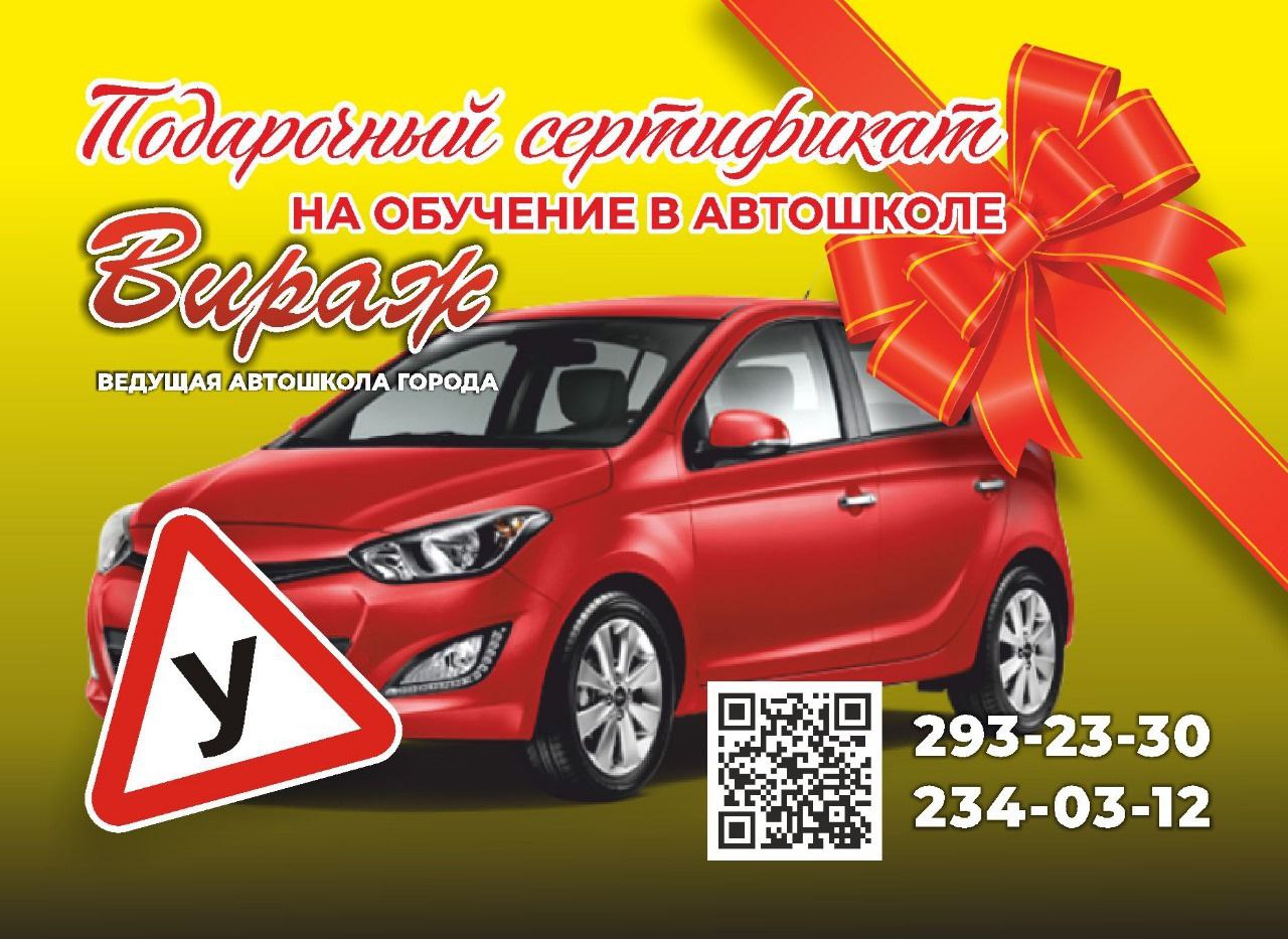 Если вы ищете идеальный и нужный подарок для ваших близких и друзей, лучшая автошкола "ВИРАЖ" предлагает Вам приобрести подарочный сертификат на любую сумму!